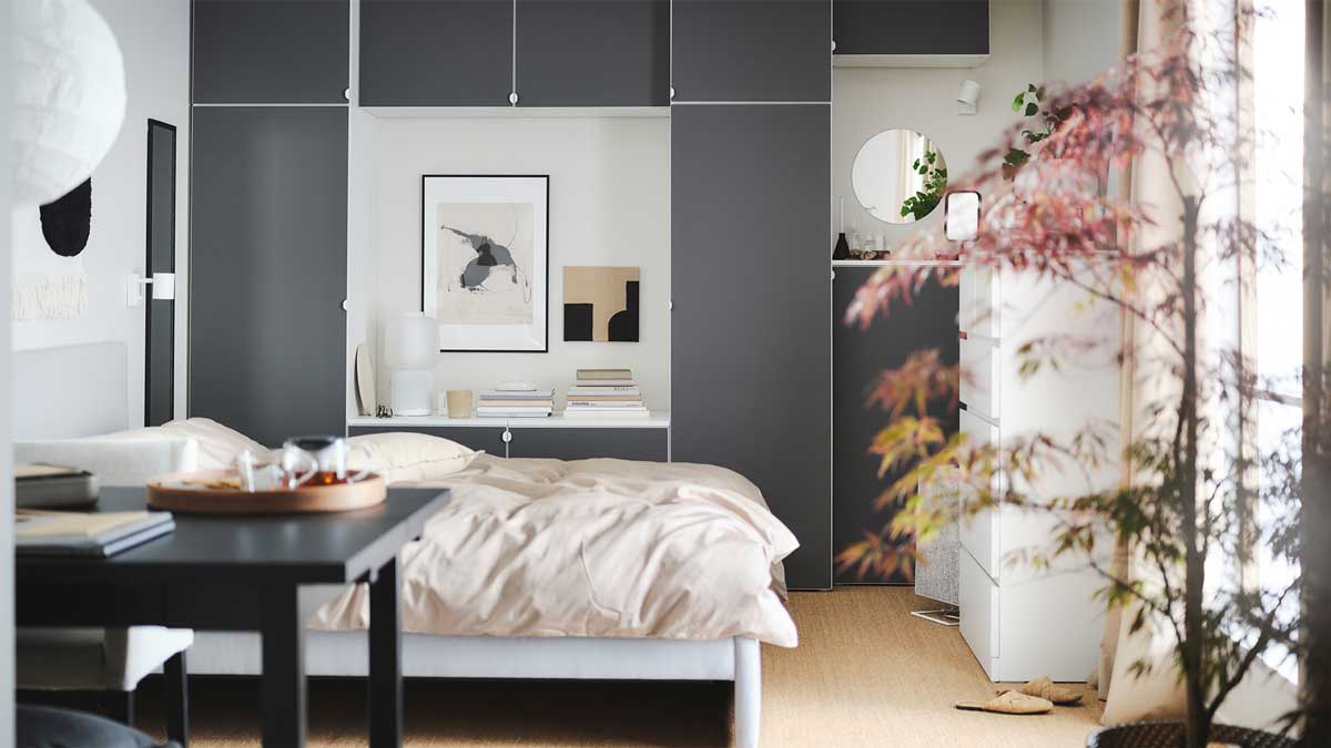 Litet, mysigt – och vilsamt. Genom att maxa förvaringen skapar du en lugn oas även i det lilla sovrummet.