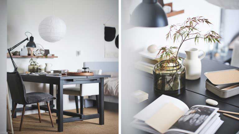NORDVIKEN utdragbart bord 4995:- MÅRENÄS karmstol 1195:- KONSTFULL vas 159:- HARVMATTA låda med fack 99:- TERTIAL arbetslampa 129:-
