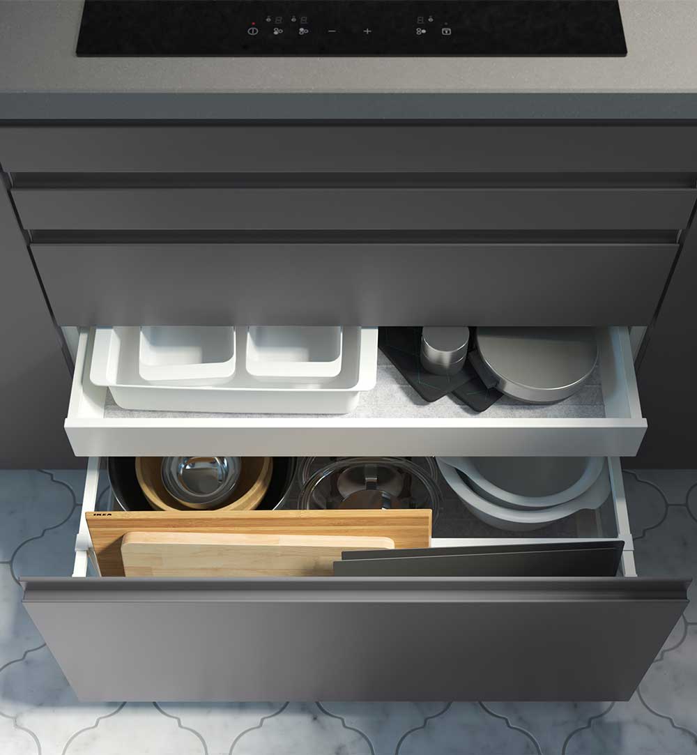 Samtidigt kan man såklart se över förvaring i lådor och skåp för att se om man kan addera några smarta lösningar där.