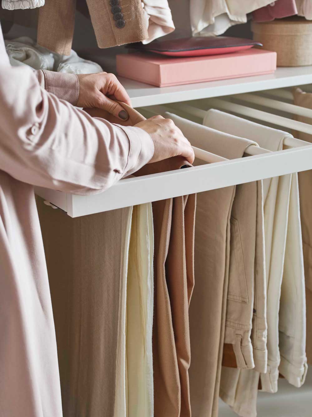 När du väljer förvaring ska du alltid utgå från vilka behov du har. Exempelvis, har du klänningar, kavajer och längre rockar som ska hänga? Eller mestadels t-shirts och tjocka tröjor som helst ska förvaras liggande?