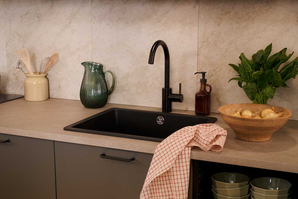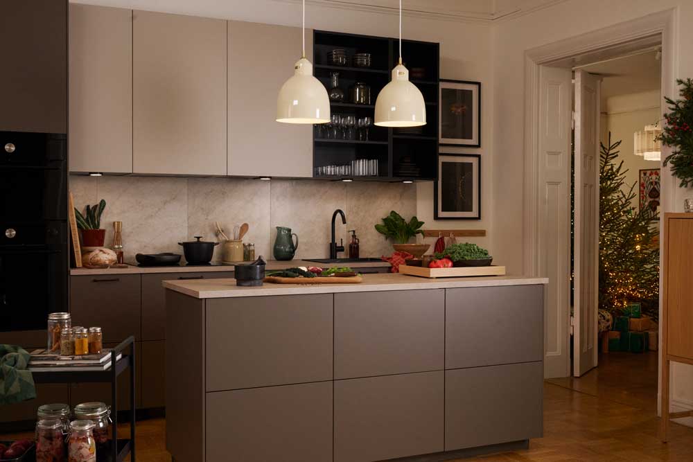 Ett kök med HAVSTORP beiga köksfronter är den perfekta basen för ditt julfirande – hur du än vill att det ska se ut. De släta luckorna ger ett elegant och samtidigt mjukt intryck. Ytorna är praktiskt enkla att hålla rena och skapar en avskalad och harmonisk känsla. De är dessutom Svanenmärkta, vilket passar dig som vill göra medvetna val som håller över tid.