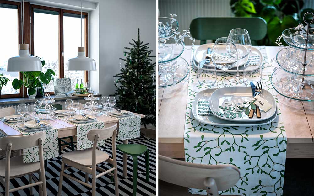 Ibland är det gästerna som ska få spela huvudrollen och då är en modern och minimalistisk dukning perfekt. Rena linjer och ljusa färger matchar dessutom HAVSTORP köksfronter perfekt. Geometriska former och minimalt med färg ger en lugn och avskalad känsla där julens samtal och kanske också sällskapsspel får allt fokus.
