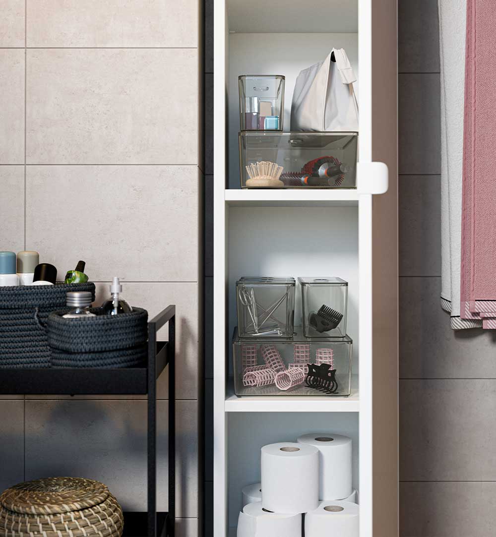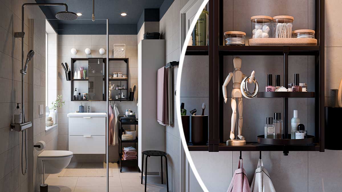 Hos IKEA finns bland annat möbelserierna ENHET och GODMORGON, där man kan kombinera olika typer av dolda och öppna förvaringslösningar som du med fördel kombinerar och på så sätt ser till att det blir ordning och reda bland accessoarerna i badrummet.