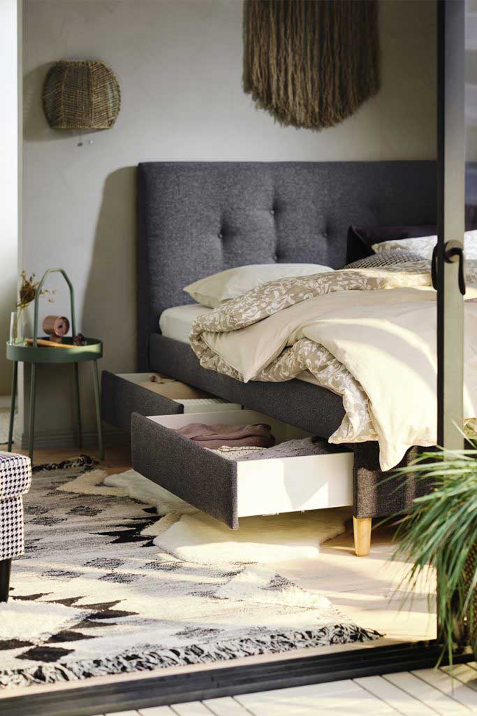 – Ett första steg är en bra kvällsrutin. Om du behöver bli påmind kan du sätta ett larm när det är dags att börja varva ner. Exakt hur dina rutiner ska se ut vet bara du själv, vi har alla olika behov, säger Emma, inredningsdesigner på IKEA.