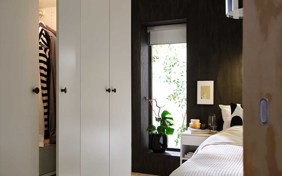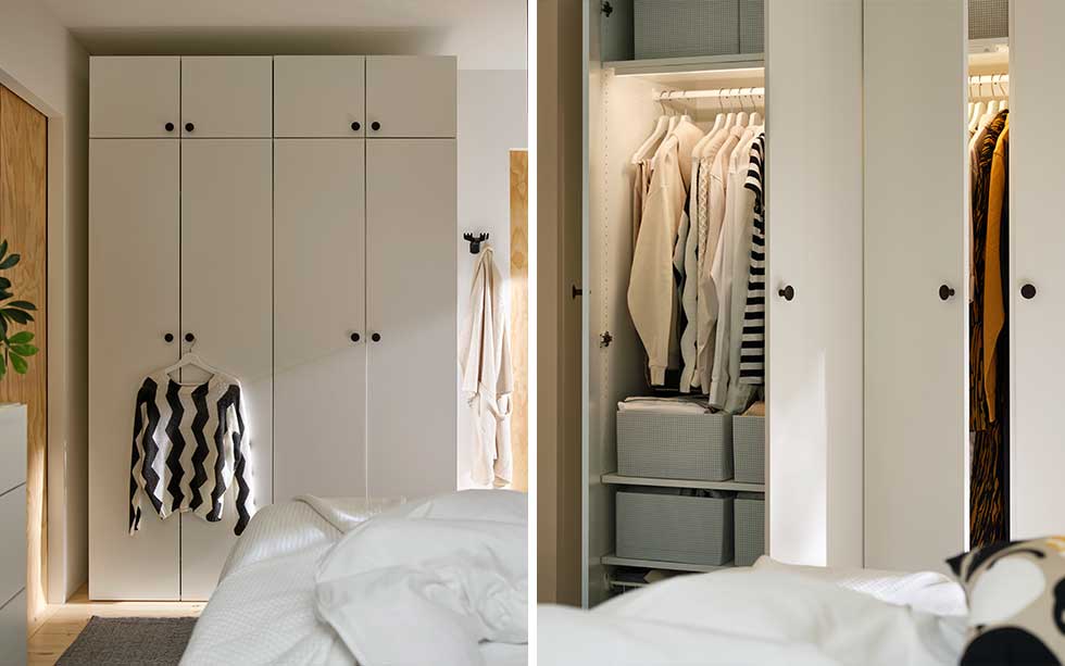 Kontrastfärg som skapar rymd. LASTARE garderobskombination 5625:- PELARTUJA överkast 449:-