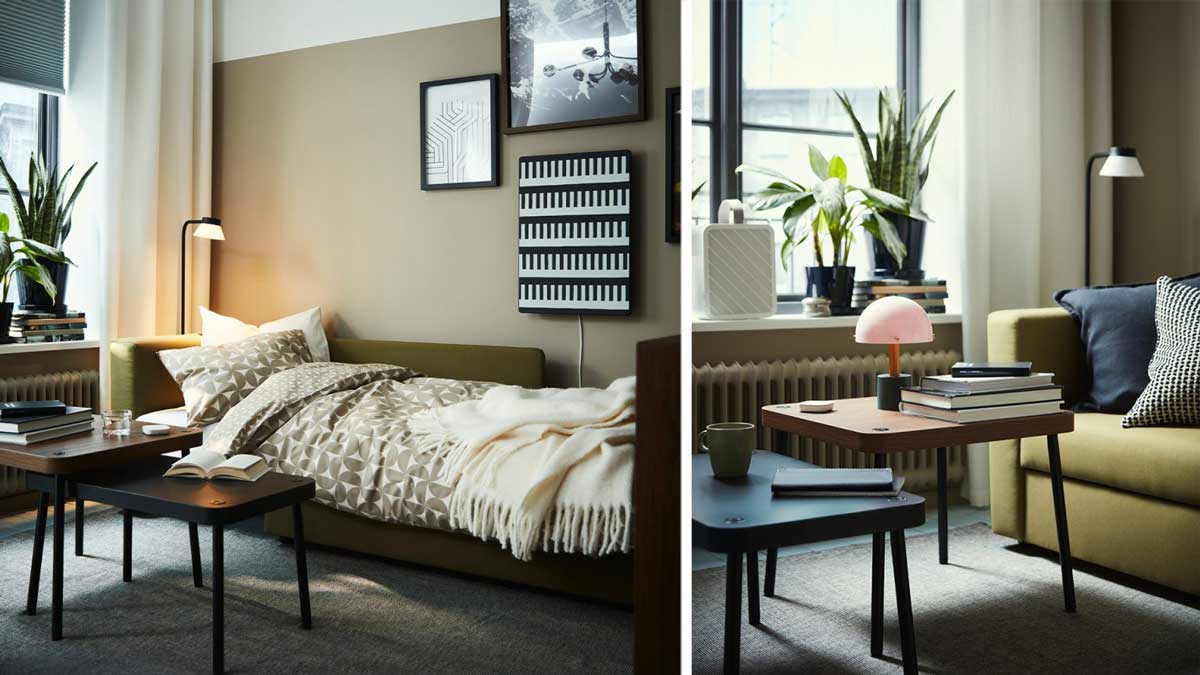 Som att hitta möbler med flera funktioner, till exempel. En soffa som kan jobba nattskift som säng. Ett bord som egentligen är flera. Eller förvaring som sväljer det mesta men ändå ger rummet ett uttryck av lätthet.