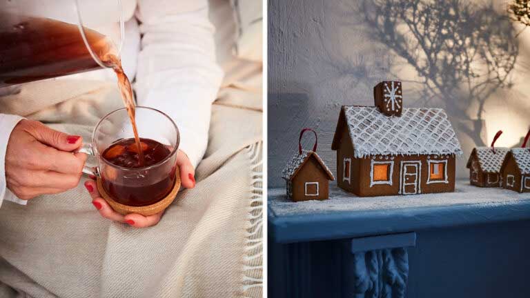 IKEA 365+ underlägg 10:-/2 st. IKEA 365+ mugg 19:-. HOLMVI pläd 120×160 59:-. VINTERSAGA pepparkakshus 29:-