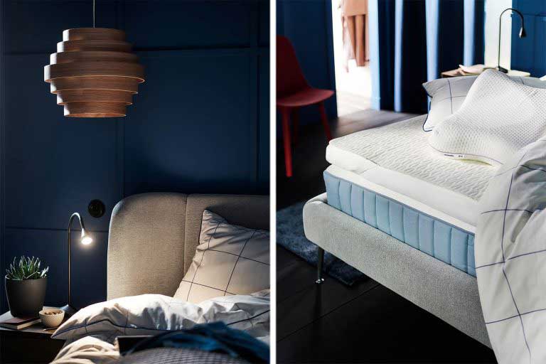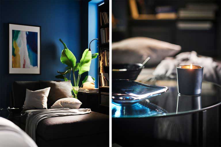 Belysningen är också viktig för nedvarvningen. Med många mindre ljuskällor, med ett varmt ljus, skapar du en mysig och lugnande atmosfär. Använd gärna dimbara lampor, så når du enklare maxad effekt. Med högtalaren till bordslampan SYMFONISK kan du också kombinera ett sömnigt sken med sömnljud så att du så småningom kan somna till ett lugnande soundtrack.