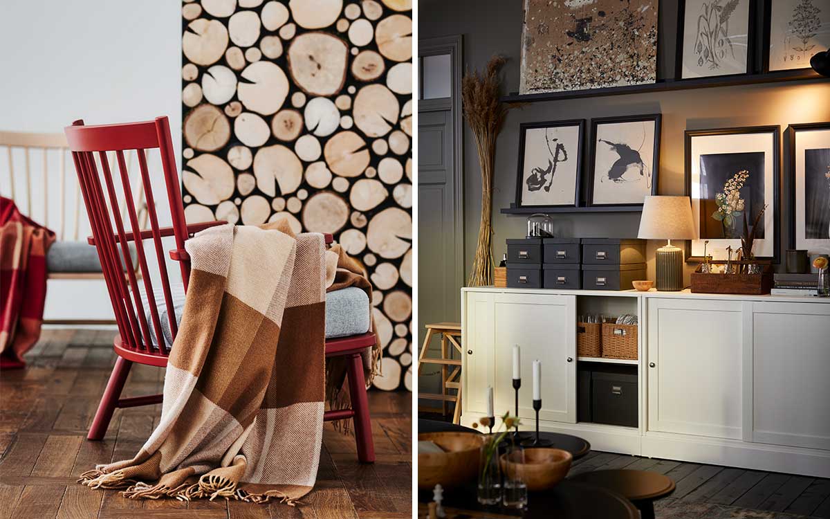 Det är de personliga detaljerna som gör vardagsrummet riktigt mysigt. Häng upp dina egna foton, rama in favoritbilder från resor eller skapa en tavelvägg med konst som betyder något för dig. Med förvaring från serien HAVSTA kan du låta dina favoritföremål synas bakom glasdörrarna. Kanske är det en ärvd vas, böcker du älskar eller en samling udda prydnader? Det är sådana saker som gör att rummet känns levande och unikt. Resten förvarar du enkelt bakom de stängda dörrarna.