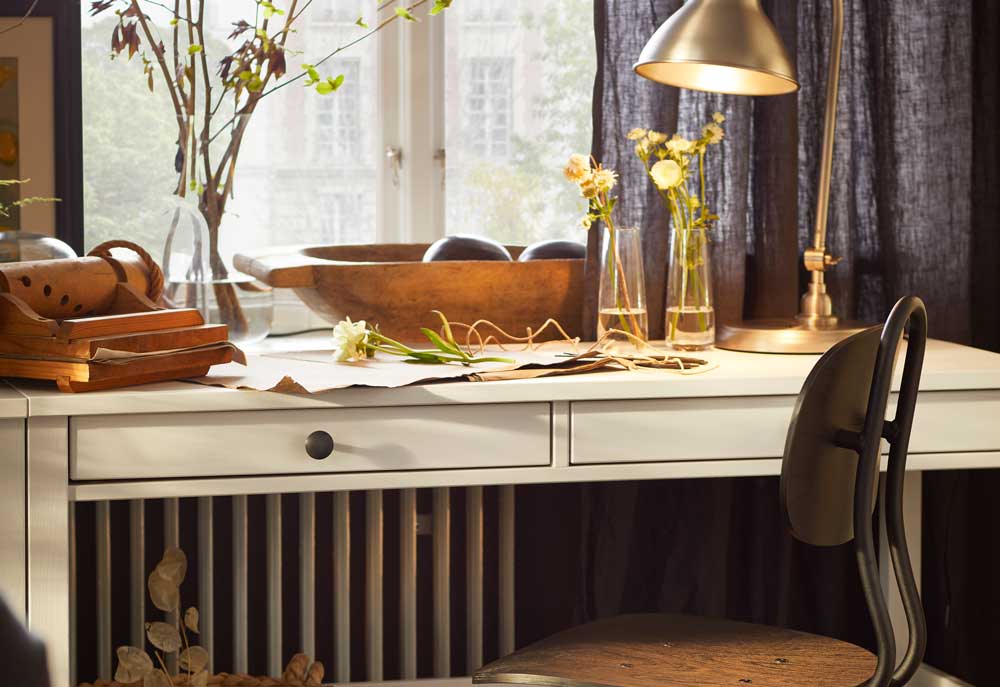 Det är vanligt att placera soffan och andra möbler längs väggarna, men ibland kan rummet kännas både mer personligt och funktionellt om du vågar tänka annorlunda. Testa att ställa soffan mitt i vardagsrummet – då frigörs väggarna och du får plats för en hobbyhörna, till exempel ett skrivbord under fönstret. Det blir en perfekt plats för hemmajobb eller kreativa projekt.