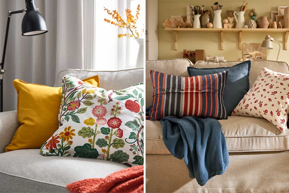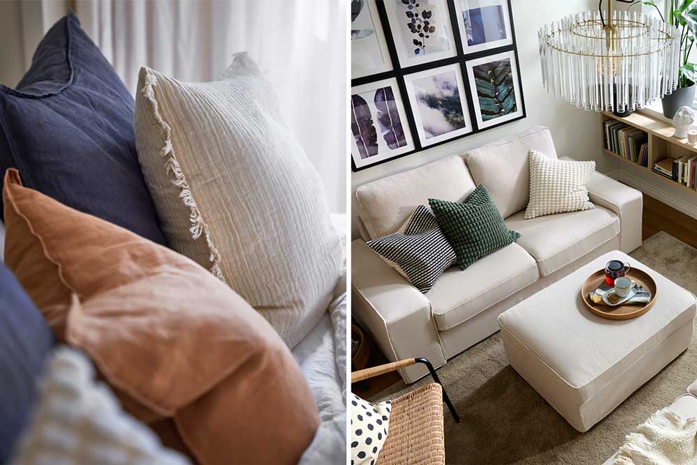 Att mixa och matcha kuddar är ett enkelt sätt att förnya vardagsrummet och skapa en personlig känsla – här är tre enkla tips.