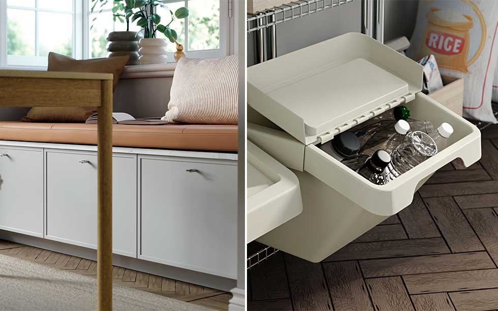 För att få plats med all förvaring är det bäst att planera för det redan när köket ritas, om du har möjlighet och budget. En köksö är ett bra exempel: den ger inte bara extra arbetsyta, utan också mer förvaring. I ett befintligt kök kan möbler med dubbla funktioner vara ett sätt att skapa mer utrymme. En sittpuff med förvaring eller en köksbänk byggd av METOD skåp är några exempel som ger extra utrymme utan att ta för mycket plats.