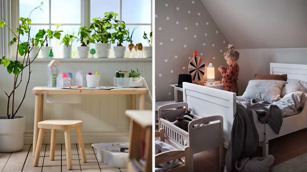 – Förmodligen ska man sova där och ha något att leka med. Kanske att man skriver eller ritar vid ett skrivbord. Målar och gör läxor. Kanske vill man ha en myshörna där man ska sitta ner och göra läxor. Aktiviteter och behov är det som styr, säger Sara, som är Inredare på IKEA Sverige.