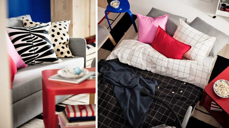– Möbler med dubbla funktioner som till exempel en bäddsoffa är ett smart knep. Den ger plats för extra gäster och har samtidigt ofta utrymme för att förvara extra täcken och kuddar, som du vill ha nära till hands, säger Petra.