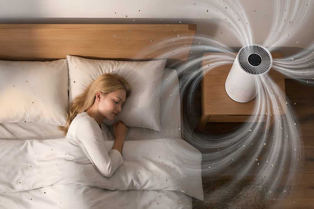 Många placerar en luftrenare i sovrummet i hopp om renare luft. Men även om den totala partikelhalten i rummet minskar kan luften nära ansiktet fortfarande innehålla pollen eller damm.
