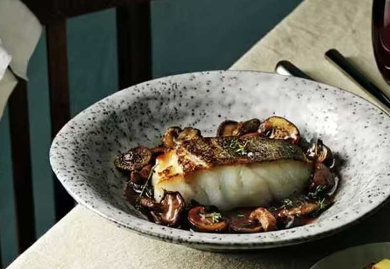 Tillagningen i det här receptet bygger på samma principer som på en bra fiskrestaurang: skreien bryns först för att få fin yta och eftersteks sedan varsamt i ugnen tills den når 50–55 grader. Då är den precis klar – mjällig, glansig och full av smak. Serverad med rödvinssås, stekt svamp och råstekt potatis blir detta en rätt som påminner om en klassisk bistrofavorit – fast med havets elegans.